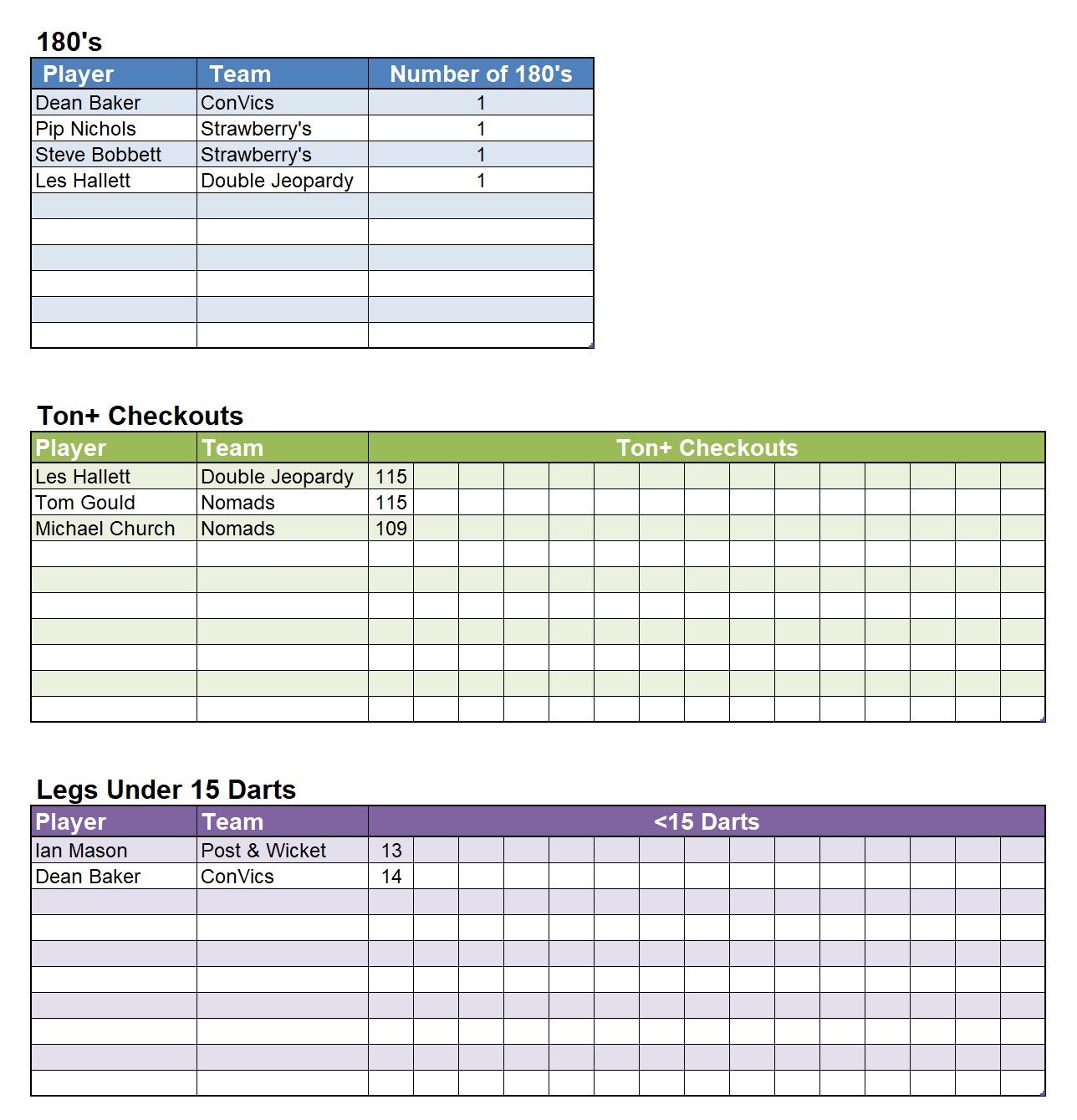Wells & District Darts League - 180's, High Checkouts, <15 Dart Legs